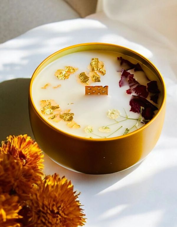Handpoured natural wax candles (coconut apricot wax) and designer candles (made of soy wax)